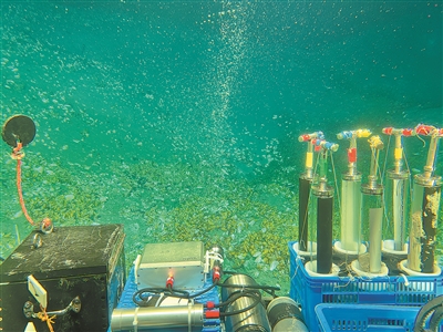 不过,仅仅隔了两天时间,当徐翠玲来到这个冷泉喷口时,却发现已没有多少气泡。“这鲜明地体现出冷泉具有易变性,一些冷泉可能仅仅过了几个小时就不再‘喷发’,但过了几天或几个月时间又‘复喷’。”为了研究冷泉流体到底能在海水中飘多远,徐翠玲对冷泉喷口处的海水展开了分层取样,并利用甲烷传感器等装备对冷泉流体成分展开了测试,以待后续进一步研究。