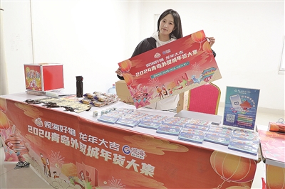 青岛首个2000平方米室内年货大集——“观海好物·龙年大吉 2024青岛外贸城年货大集”于2024年1月14日圆满落幕。该活动由观海新闻、青岛市自媒体协会主办,众多国内和青岛本土的知名品牌齐聚,各色农副产品、酒水、干果、零食云集。现场还汇聚了剪纸、糖画、泥人、写春联等文化活动与互动环节,年味十足。10天时间内,共有近50万人次现场参与选购和互动活动。