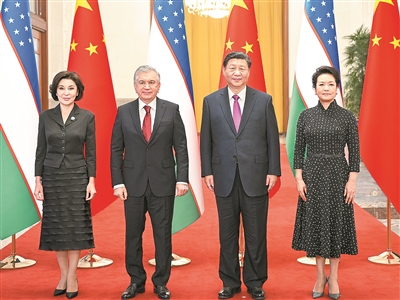 习近平指出,32年前,乌兹别克斯坦在中亚国家中率先同中国建交,两国人民传承丝路精神,中乌友好大树根深叶茂,生机勃勃。特别是过去7年多来,我们共同引领两国各领域合作呈现蒸蒸日上的良好局面。建设一个更加富有内涵和活力的中乌关系,是两国人民的共同期盼。双方要以发展新时代全天候全面战略伙伴关系为契机,以高水平政治互信筑牢中乌命运共同体的根基,以高质量共建“一带一路”助力中乌推进各自现代化事业。