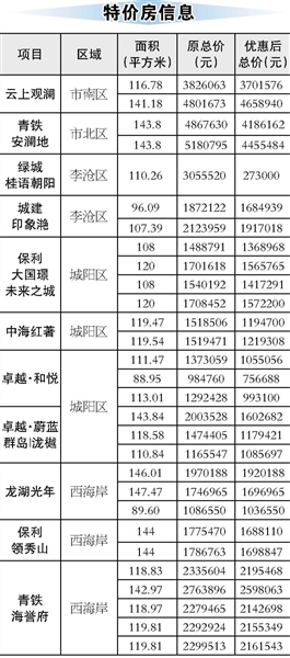 临近春节,青岛各大售楼处纷纷开启“抢客”模式,记者了解到,青岛主城区的多个项目推出特价房,西海岸新区也有不少项目推出“折上折”“送家电”等让利促销活动。本期栏目从青岛多个售楼处择优选择30套房源,让市民买房放心,并享受更多优惠。