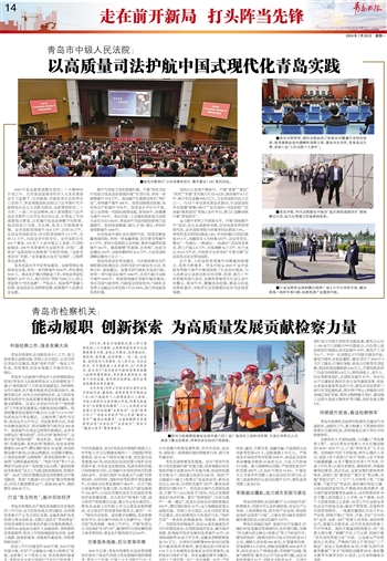 2023年是全面贯彻落实党的二十大精神的开局之年。在市委坚强领导和市人大及其常委会有力监督下,在市政府、市政协及社会各界关心支持下,青岛两级法院坚持以习近平新时代中国特色社会主义思想为指导,全面贯彻党的二十大和二十届二中全会精神,深入贯彻落实习近平法治思想和习近平总书记对山东、对青岛工作的重要指示要求,忠实履行宪法法律赋予的职责,能动服务打头阵、当先锋,各项工作取得新发展。全市法院受理案件35.8万件、办结35万件,均居全省法院首位;市中院受理案件3.1万件、办结3.1万件,均居全省中院首位。全市法院共有102个集体、170名个人获市级以上表彰,77项经验做法、225件典型案例在全国和省、市推广,涌现出“全国法院先进集体”中院环资庭,“全国优秀法官”齐新,“全省最美女法官”纪晓昕、王晓晖等先进典型。