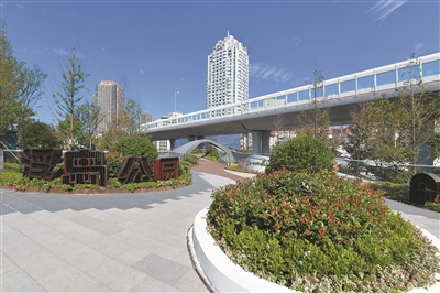 ■市北区以城市功能提升带动百姓生活品质提升。图为胶宁高架路下的浮岛公园。 崔冬妮 摄