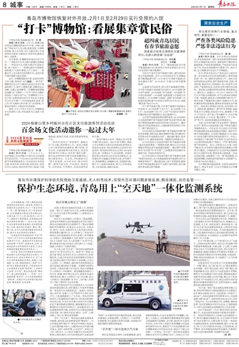另外,“空天地”一体化综合遥感监测体系的构建,助推重点河流断面监管“精细化”。在水环境监测和保护中,青岛市环科院以改善水生态环境质量为核心,以梳理突出水环境问题为重点,坚持“水陆统筹、以水定岸”,采取以无人机飞航为主、人工徒步为辅的方式对国省控断面上游区域的入河污染情况进行全面监测“体检”,对水面和岸边环境监管巡视,重点巡查河涌情况、水面漂浮物、入河排污口、非法养殖、垃圾倾倒、农业面源污染等污染源,为流域水环境治理提供重要决策依据。