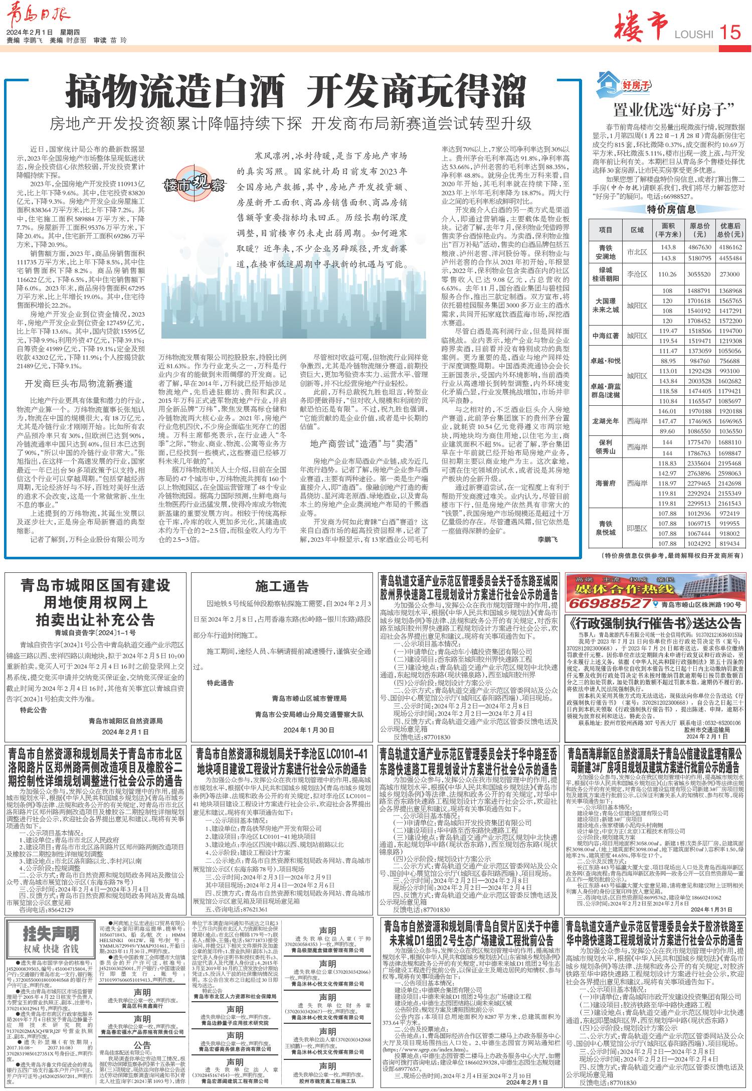 01 首版 02 聚焦青岛两会 03 聚焦青岛两会 04 聚焦青岛两会 05 要闻 06 青报聚焦 07 国内 08 城事 09 金融街 10 专版 11 专版 12 专版 13 幸福市北 14 幸福市北 15 楼市 16 会展