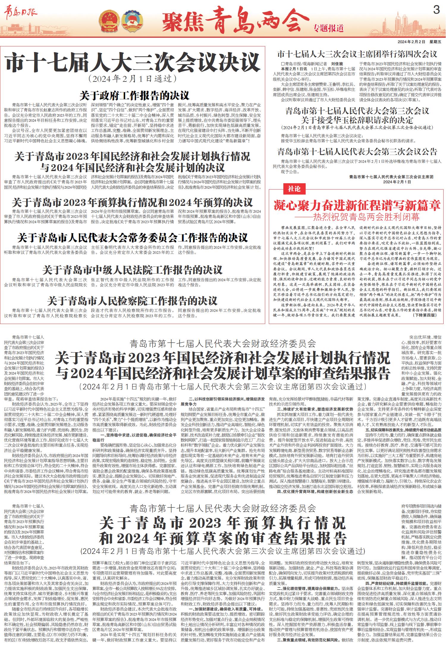 关于青岛市2023年预算执行情况和2024年预算草案的审查结果报告