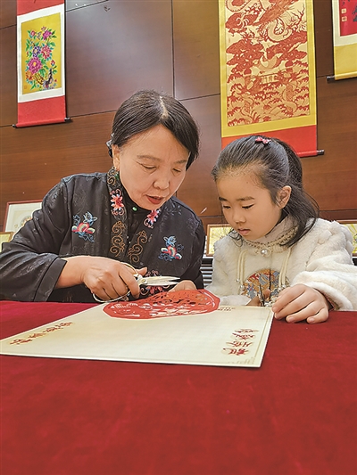 一纸一世界,一刀一乾坤。焦丽华介绍,青岛剪纸的剪裁可分为剪、刻、撕、缵、烧、画等几大类。剪纸的技巧又分为阴剪、阳剪两种。河北剪纸将染色与刻纸有机的结合,形成既强烈对比又和谐统一,鲜艳明丽不愠不火的优美色彩效果。“我出生在河北,从小跟随祖母学习剪纸,掌握了河北剪纸的精髓。后来,我来到青岛定居,又学习了当地的剪纸工艺。”焦丽华说,她现在的剪纸风格,正是将二者融会贯通。