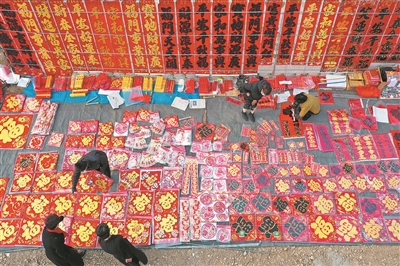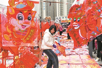 ■上马大集红彤彤的春联福贴洋溢着浓郁的节庆气息。赵健鹏 摄