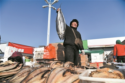 ■王哥庄大集上的甜晒鲅鱼是腊月年集的特色年货。 王 雷 摄