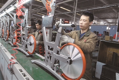 ■青岛英派斯健康科技股份有限公司工人在车间作业。