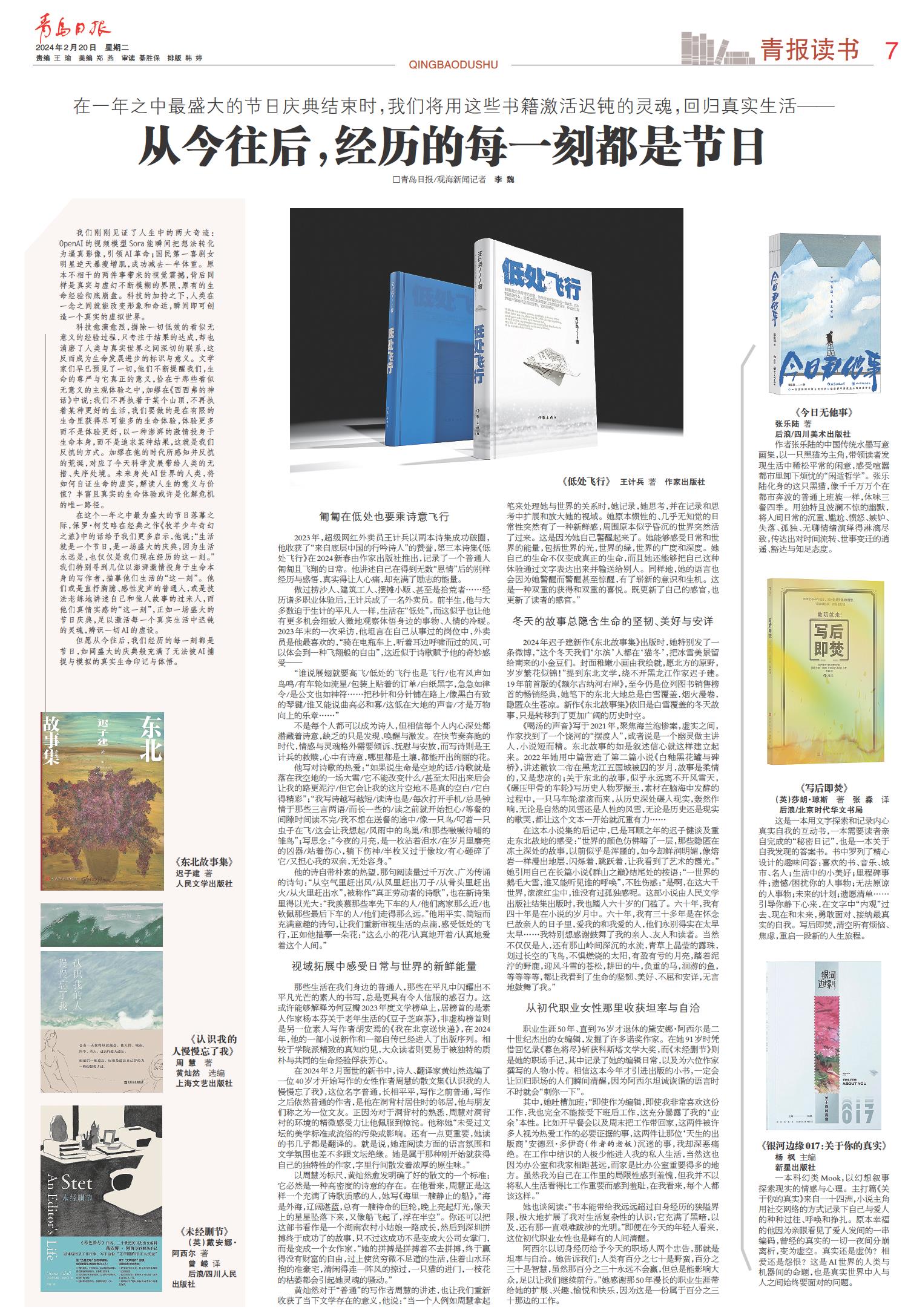 2023年,超级网红外卖员王计兵以两本诗集成功破圈,他收获了“来自底层中国的行吟诗人”的赞誉,第三本诗集《低处飞行》在2024新春由作家出版社推出,记录了一个普通人匍匐且飞翔的日常。他讲述自己在得到无数“恩情”后的别样经历与感悟,真实得让人心痛,却充满了励志的能量。
