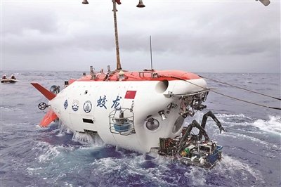 ■“蛟龙”号载人潜水器在南大西洋下潜作业。