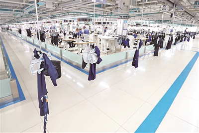 ■在青岛酷特智能工厂,一条流水线可生产出满足不同需求的个性化服装。