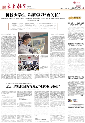 2024年,崂山区教育系统将坚持把创新作为引领发展的第一动力,聚力在扩增基础教育优质资源、打造高素质教师队伍、开辟教育数字化新赛道等七个方面提质争先,开启教育强区建设新征程,奋力在全市教育高质量发展中走在前,为教育强市建设提供“崂山方案”。