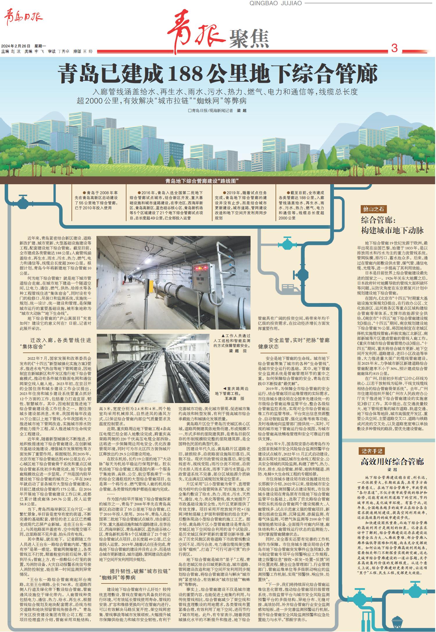 青岛已建成188公里地下综合管廊