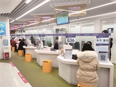 ■青岛市公安局出入境接待大厅内,市民正在有序办理出入境证件。