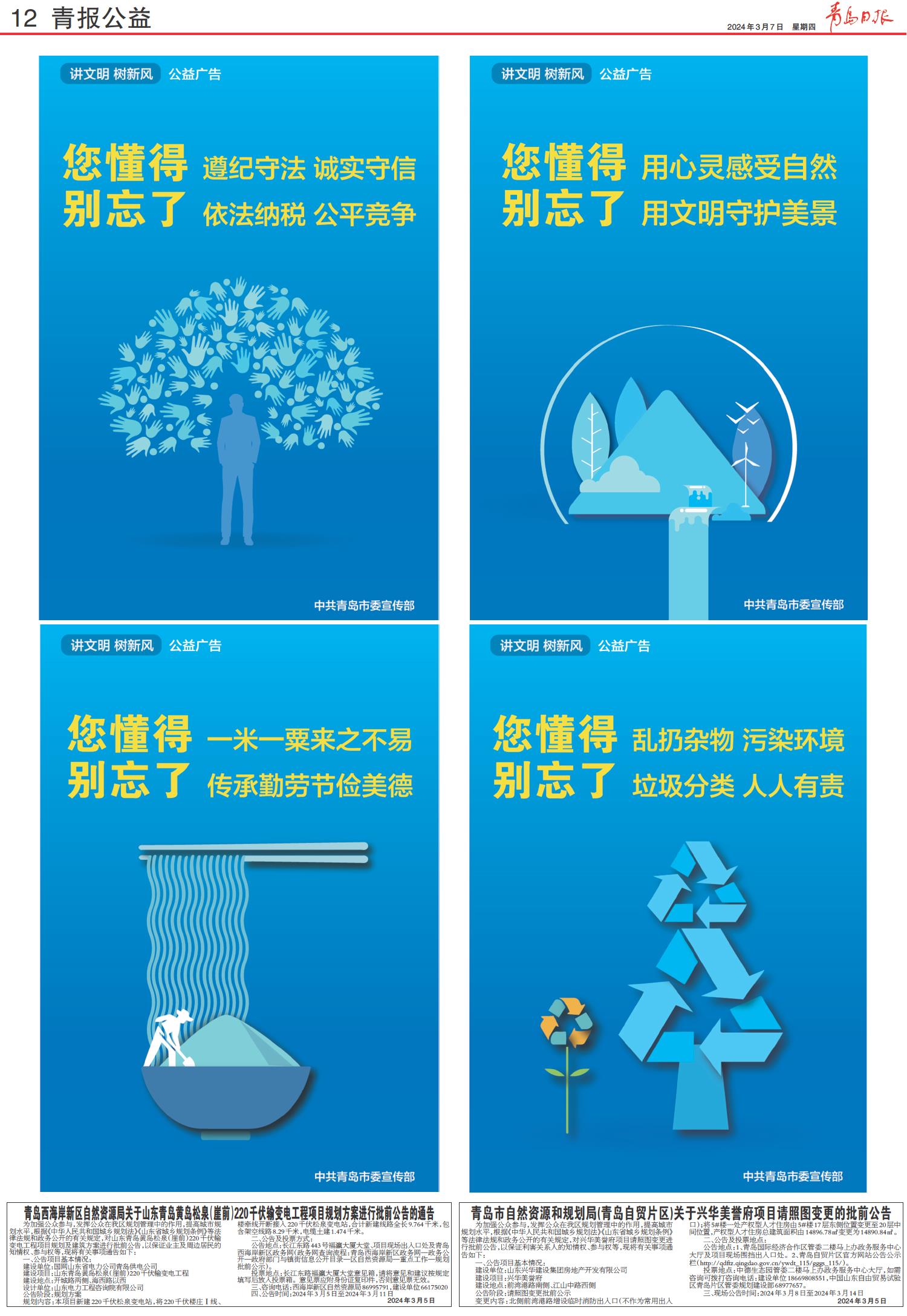 01 首版 02 全国两会特别报道 03 全国两会特别报道 04 要闻 05 城事·专题 06 理论周刊 07 金融街 08 幸福市北 09 幸福市北 10 专版 11 公告 12 青报公益