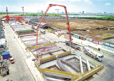 ■青岛地铁集团加快建设“轨道上的青岛”。图为地铁8号支线少海北站主体封顶。