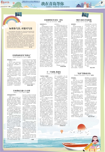 作为海边长大的孩子,我们从青岛水族馆开始,抚摸蔚蓝,认识海洋;从青岛的海开始,认识“红瓦绿树,碧海蓝天”的故乡青岛;我们从青岛开始,认识世界,拥抱世界。我们见证着家乡青岛日新月异的发展;见证着中国人不断走向深蓝,建设海洋强国的时代梦想。家乡青岛,也见证着我们一代代青岛人守望家乡、热爱家乡、建设家乡。