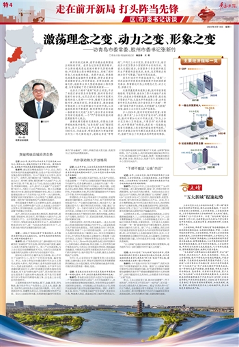 步入2024年,胶州市的使命将更重:省委提出,要开展“上合示范区扩能行动”;市委要求,胶州市要加大对外开放力度。“作为上合示范区核心区所在地,只要坚持‘对内要做实、对外要搞活’的路径,我们就一定能把这些重任转换成上级为胶州赋能的有利契机。”面对记者提出如何化解区域发展压力等问题时,张新竹给出了许多极具思辨色彩的解答。