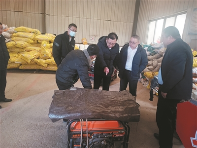 ▲青岛农商银行客户经理调查农机和农资配置情况。