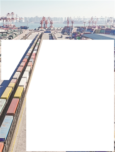 ■山东港口青岛港海铁联运班列。