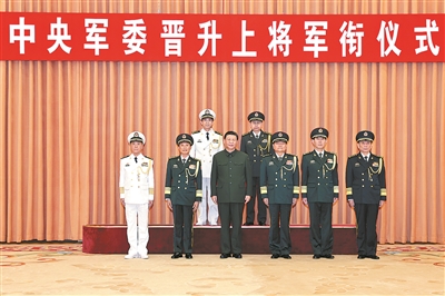 下午5时许,晋衔仪式在庄严的国歌声中开始。中央军委副主席张又侠宣读了中央军委主席习近平签署的晋升上将军衔命令。中央军委副主席何卫东主持晋衔仪式。