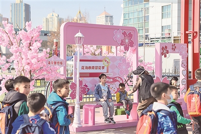 珠海一路上玉兰花风姿绰约,三明南路上樱花迎风摇曳,八大关宁武关路上海棠花含苞待放……时光为令,春花渐次绽放。与此同时,越来越多的小型花海、口袋公园随城市建设和“微更新”来到市民身边,“推窗见绿、出门入园”正成为居民生活的新常态。