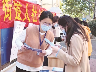 ■辽宁路街道人社服务中心送政策进企业。 街道供图