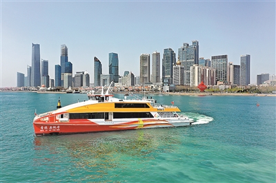 ■“海上樱花巴士”为市民游客提供了海上看青岛的新视角。