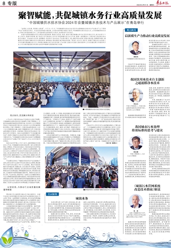 “会朋友、议良策、寻机遇、求发展”。4月15—21日,“中国城镇供水排水协会2024年会暨城镇水务技术与产品展示”(以下简称“年会”)在青岛市举行。年会由住房和城乡建设部、山东省住房和城乡建设厅指导,中国城镇供水排水协会主办,山东省城镇供排水协会、青岛水务集团有限公司、山东金诺国际会展有限公司承办,各省级地方水协协办。