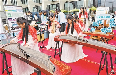 ■青岛幼儿师范的学生现场展示才艺。韩 星 摄