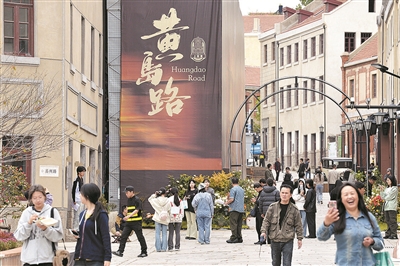4月30日,位于青岛历史城区的黄岛路迎来不少市民游客“打卡”。 于 滈 摄