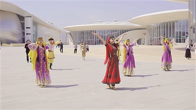 ■5月3日, 在青岛·上合之珠国际博览中心,来自上合组织国家的演员们载歌载舞,呈现了一场精彩纷呈的上合文化艺术盛宴。假期前三天,这里每天接待游客一万余人次。