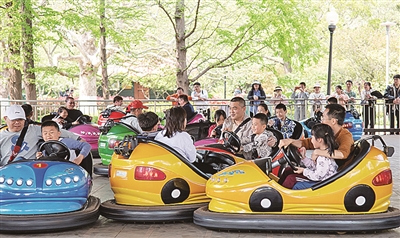 ■市民游客假期在中山公园“打卡”游乐场。 刘 栋 摄