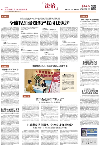 “律师来企业‘法治体检’时,指导我们从用工、财税、生产销售等方面进行合规建设,帮助我们从源头上解决长期以来困扰企业经营的难题。”青岛某纺织品有限公司相关负责人介绍,近日,即墨区公益惠企法律服务团队帮助该企业量身定制一套适合企业的合规管理体系,大大提高了企业参与市场竞争和预防风险的能力。