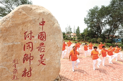 ■“中国最美乡村”灵山姜戈庄村村民在表演广场舞。