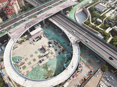本报5月8日讯 8日上午,山东路-鞍山路东北象限连接匝道施工现场一派繁忙景象,匝道桥主体工程已基本完工,工人们正在桥上进行防水施工,项目建设全面转入桥面铺装和附属设施施工阶段。