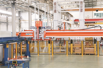 “新开发的龙门机器人大量采用铝合金材料,大大减轻了运动部件的重量,最大程度实现轻量化设计,这也是实现4米每秒速度的前提。龙门大跨距对X轴两侧同步运行提出了很高要求,这也是我们的核心技术之一。目前,龙门机器人已实现的最大抓取重量达2500千克。”工作人员说。
