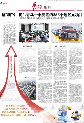 今年一季度,青岛市新签约亿元以上项目255个,计划总投资2146.6亿元。从招商成效来看,总体达到预期。