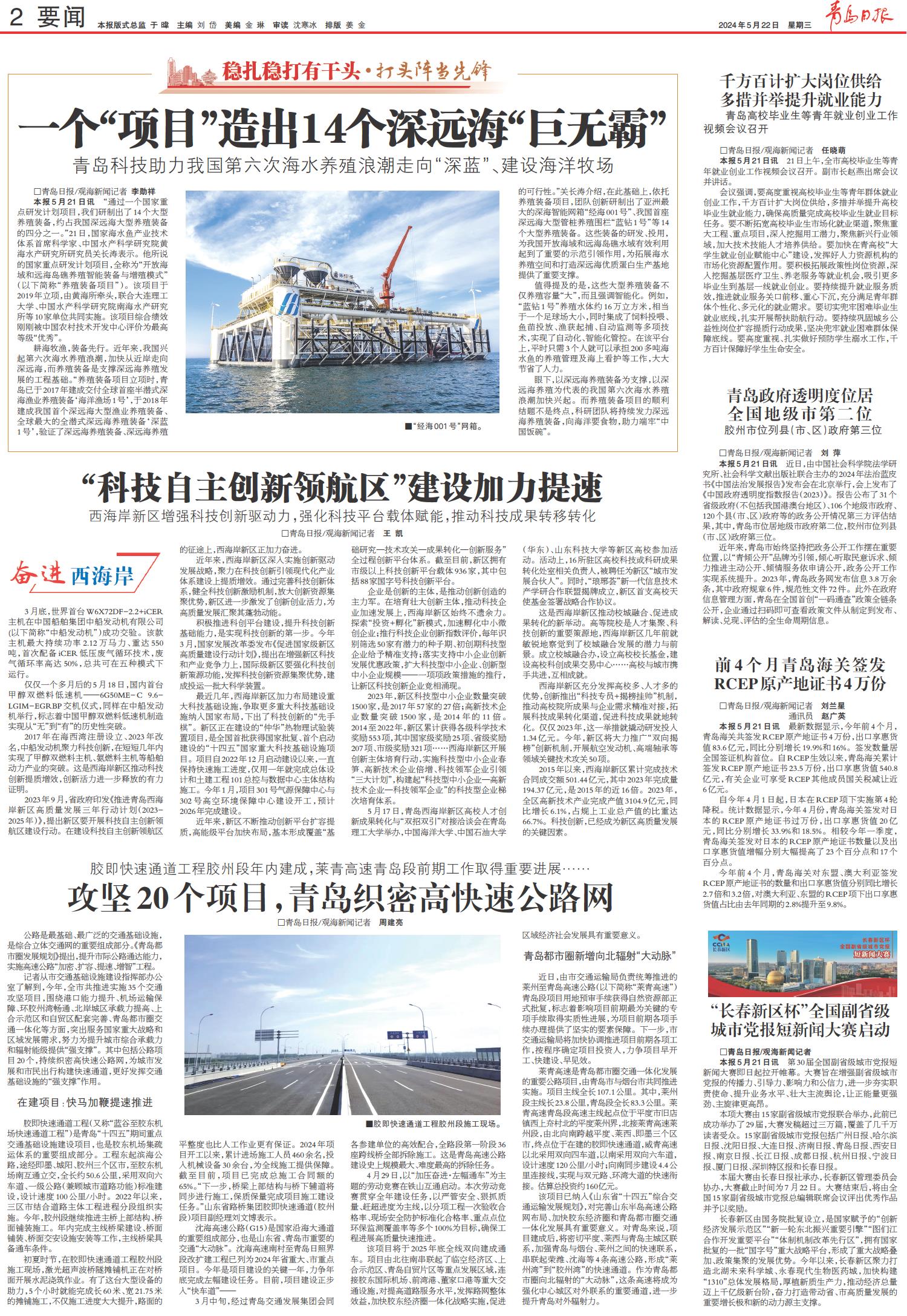 “科技自主创新领航区”建设加力提速西海岸新区增强科技创新驱动力,强化科技平台载体赋能,推动科技成果转移转化