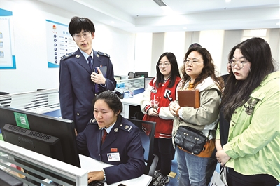 ■日前,国家税务总局青岛市市北区税务局邀请多名纳税人代表作为“税费服务体验师”走进税务部门的台前幕后,多视角发现办税缴费中的“梗阻”问题,助力打造更高效、更优质的办税缴费体验。 万云军 摄