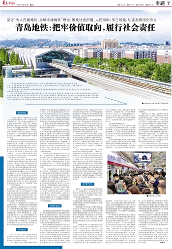 一直以来秉承“为人民建地铁、为城市建地铁”理念的青岛地铁集团近日发布《2023社会责任报告》,从中可以感受到青岛地铁坚守社会责任的初心——