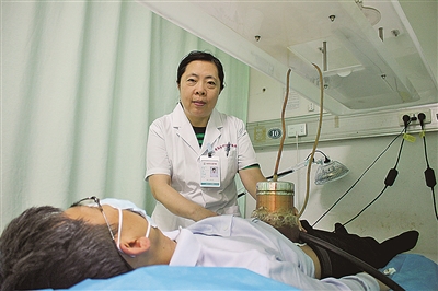 ■市中心医院针灸科主任高霞为患者脐灸。 黄 飞 摄