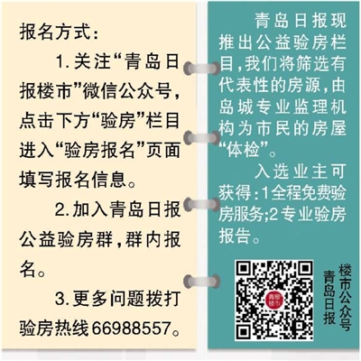新房到底怎么收?房子各方面指数是否合格?每年的春夏之季,都是开发商交房旺季。为了帮助购房者解决在收房中遇到的问题,日报记者联合专业验房师、律师组成公益验房团,在全市范围内征集交付信息,根据业主报名情况走进岛城楼盘,为新房免费“体检”。