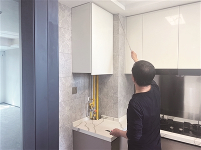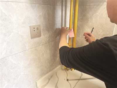 除此之外,验房师还发现客厅天花板吊顶灯槽被腻子粉污染。检查完吊顶,薛工又到厨房检查电器及上下水问题。在检查到燃气管道时,薛工发现了一处严重的安全隐患,即固定燃气管道的管卡没有安装牢固。“燃气管道上的燃气阀开关,会经常用到。如果管卡安装不牢固,管道会因为开关燃气阀产生晃动,长此以往,将造成上下燃气管道接口松动,一旦燃气泄漏,后果不堪设想。”薛工叮嘱马先生,“这个问题必须重视,一定要让开发商固定好管道。”