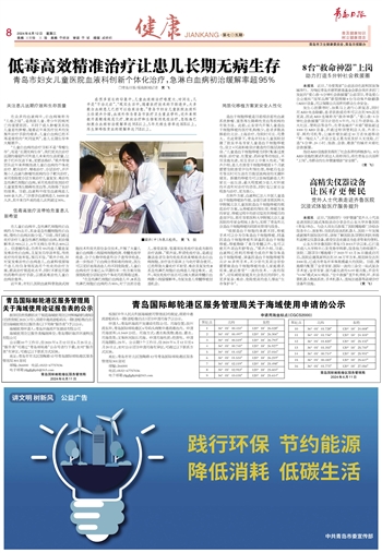 在很多家长的印象中,儿童血液病治疗难度大、时间长,几乎是“不治之症”。“现实生活中,随着医疗技术的不断进步,大多数白血病患儿已经可以临床治愈。”青岛市妇女儿童医院血液科主任梁卉介绍,血液科作为青岛市医疗卫生重点学科,近年来积极开展精准规范化疗、靶向治疗和生物制剂免疫治疗,急性淋巴细胞白血病初治缓解率达95%以上,5年无病生存率达80%以上,再生障碍性贫血的缓解率达75%以上。
