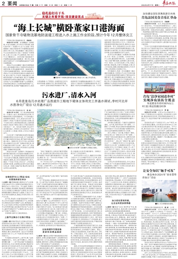 其中,即墨北厂改扩建、即墨西厂提标、世园会再生水厂提标项目为“两个清零、一个提标”首批完成的建设任务,准Ⅳ类水排放规模新增14.6万吨/日。目前李村河北岸水质净化厂、娄山河厂提标扩建、城阳污水厂二三期提标等项目正在加速实施,李村河污水处理厂总氮提标改造等4个应急提标项目正在开展施工准备工作,将于6月份集中开工建设。到今年年底,10座污水厂扩容提标项目完成后,青岛水务集团污水处理能力将增至152.35万吨/日,较2023年增长13%;环湾沿河污水处理厂将全部达到准Ⅳ类尾水排放标准,有效提升生态环境质量。