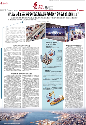 打造黄河流域最便捷“经济出海口”,青岛正在持续畅通沿黄陆海大通道,拓展流域腹地,发挥门户枢纽作用,实现从“通道经济”到“枢纽经济”的升级,在更广阔的空间优化资源配置能力,努力打造区域经济增长极。