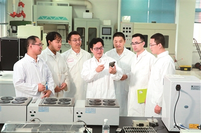 ■孙金声(左四)院士团队在实验室开展科研工作。
