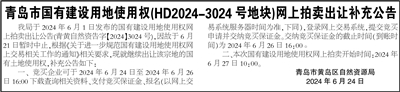 青岛市国有建设用地使用权(HD2024-3024号地块)网上拍卖出让补充公告